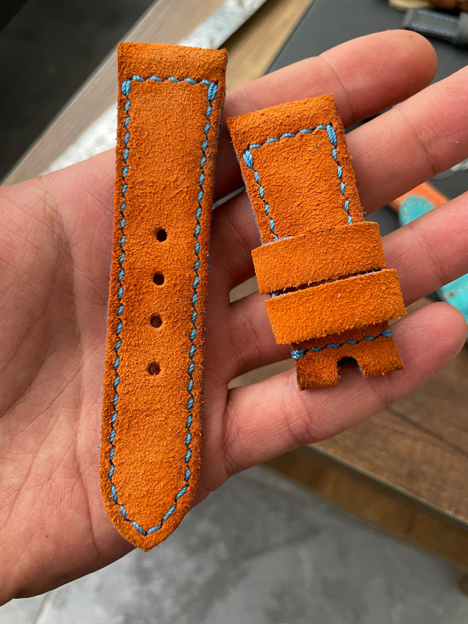 Ready for shipping,we can add buckle if requested.Made using finest quality suede,calf leather