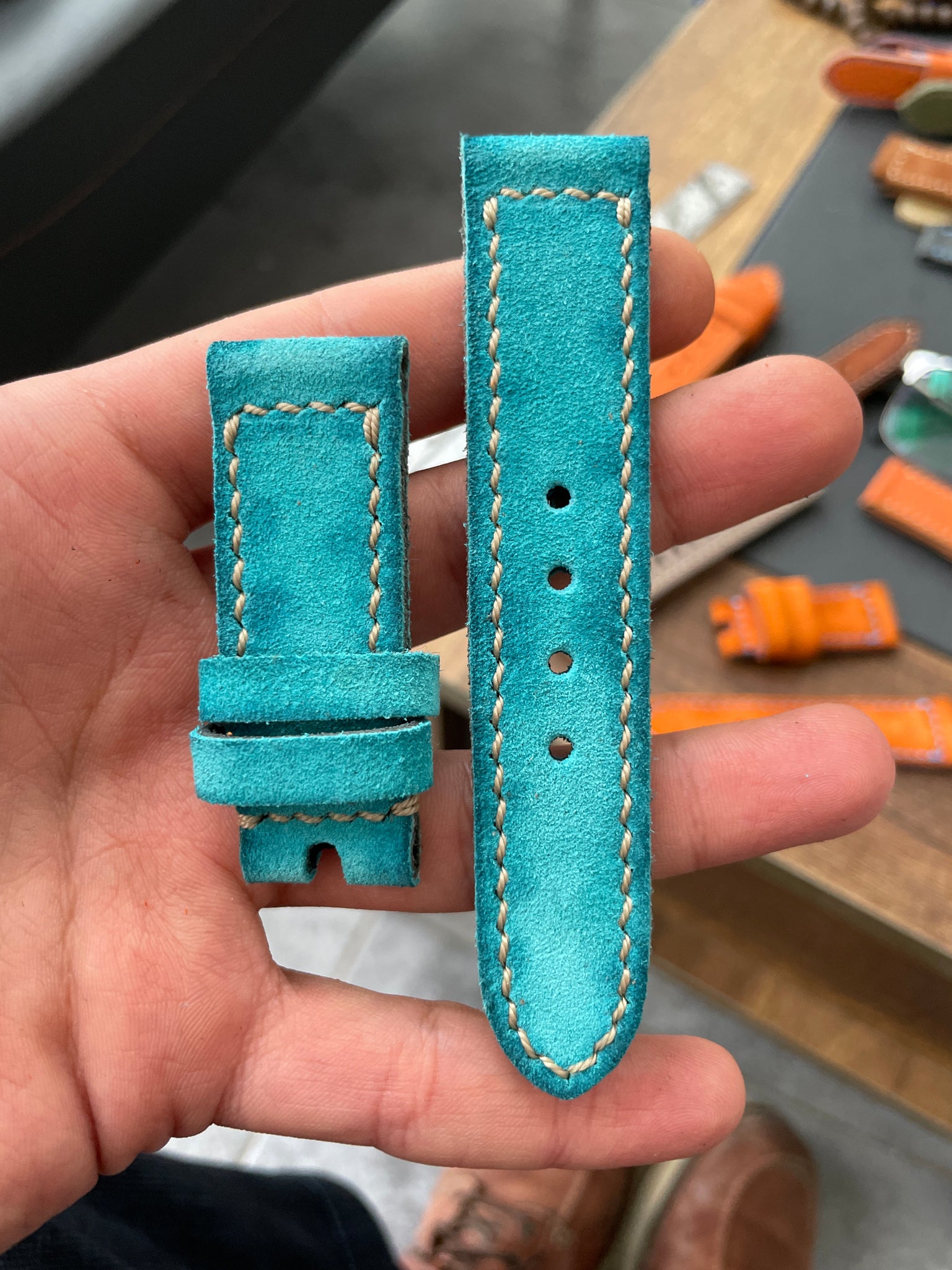 Ready for shipping,we can add buckle if requested.Made using finest quality suede,calf leather