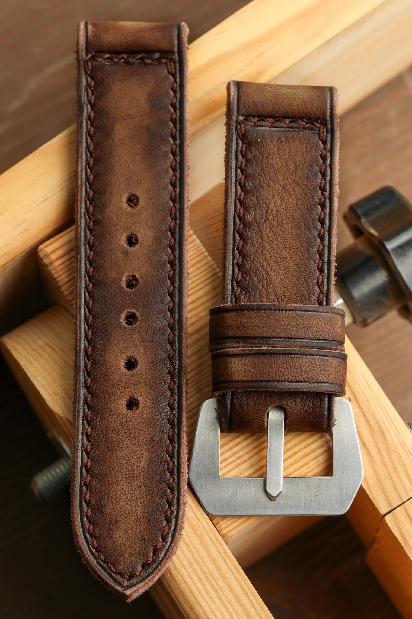 Sword Watch Straps are made using finest quality calf leather. Our straps are handmade from the stitching to the cutting of the leather. We offer world-wide express shipping. Your order will be custom made upon order. Due to the custom nature of the item expect your item to be ready for shipping 12-17 days after the order. We use Express postage and you should expect delivery delivery in 1-3 days after your strap has been made .You will find our watch straps are the finest quality and due to the nature of the hand made process, no two are the same. You will have a individual strap that will last. Thanks for choosing us.